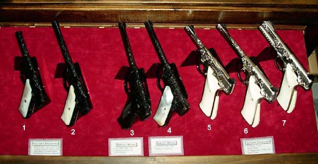 - Serial number 102xxx (Mfg. 1936). Target model, with engraving that is virtually identical to the Sport model above. 1 and 2 are a matched pair of publicity guns for Colt. They were sent to numerous trade shows and other displays in 1936.